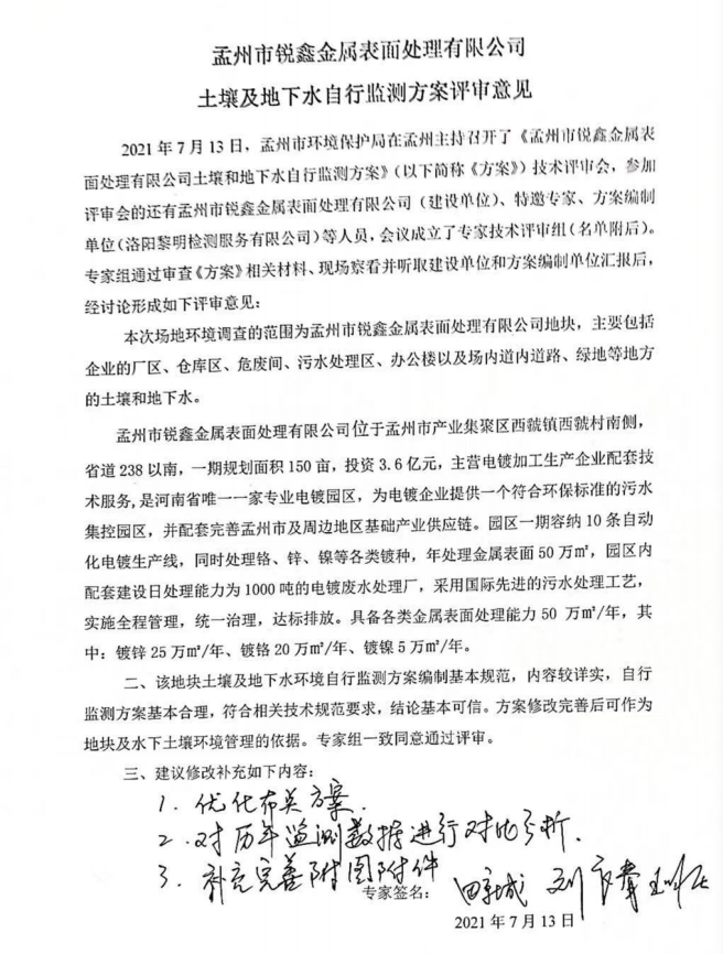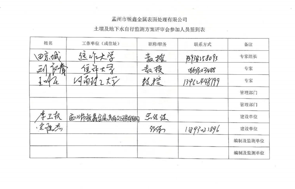 孟州市銳鑫金屬表面處理有限公司土壤及地下水自行監(jiān)測報告