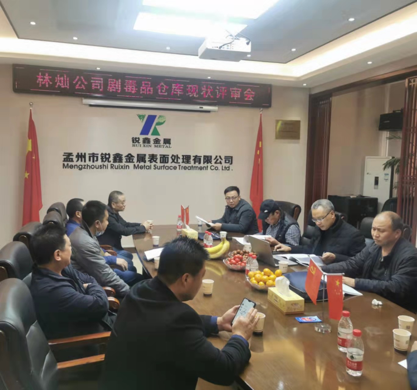 2021年11月13日,驗收專家組、應急管理局郭局、李科長、治安大隊楊警官、謝警官,以及園區(qū)李總、安技環(huán)保部劉部長召開林燦公司劇毒品倉庫現(xiàn)狀評審會,會議順利召開,相關專家給予高度評價。